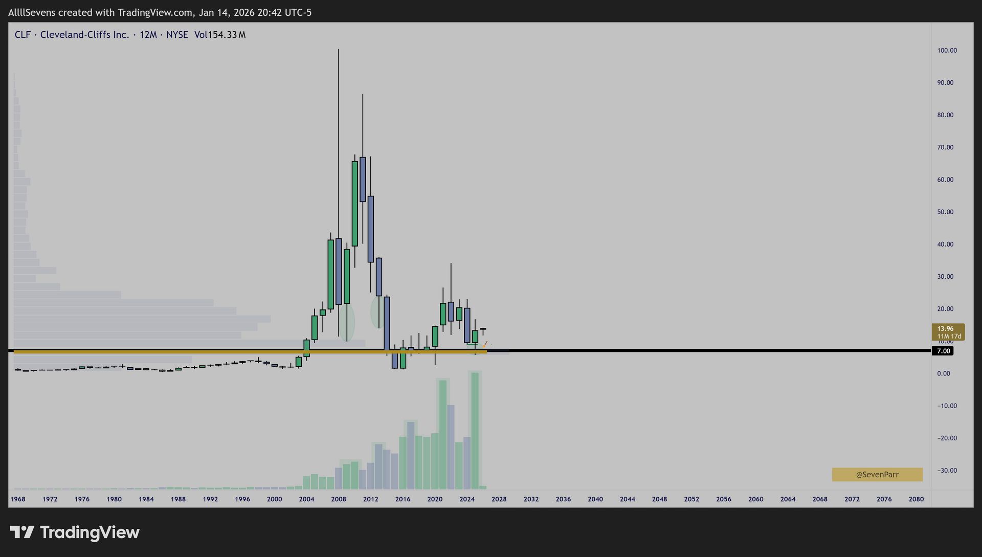 $7 is the largest support on record for CLF ever since it’s 1968 IPO