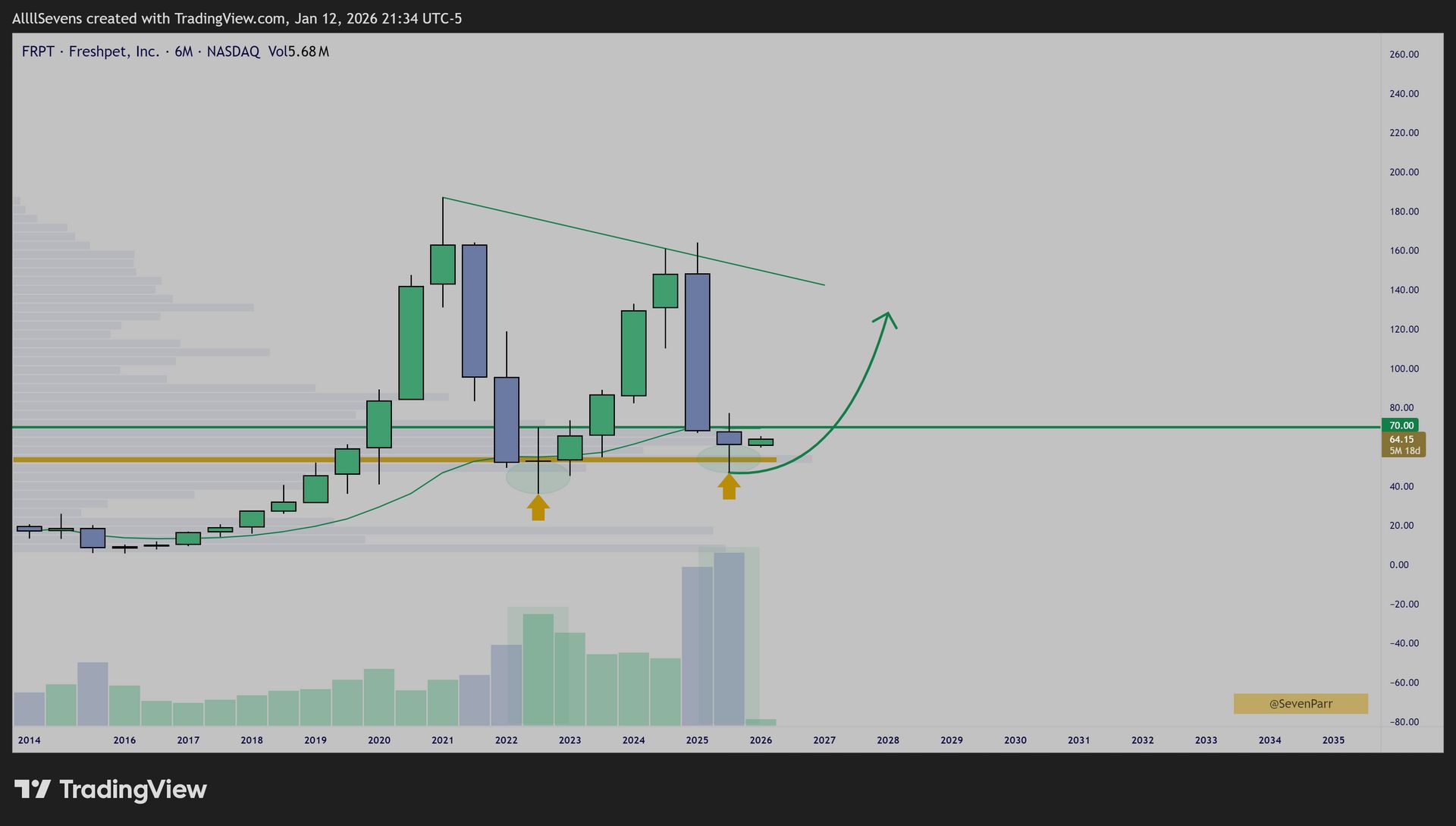 Overall, this stock is in a major decline—down 65% from ATHs and lagging the S&P 500 by a longshot—so I want to be conservative here. It has a compelling story, and the chart shows signs that support it, but some further confirmation would be great to see. Knowing the $80 zone is where accumulation here first began and that $70 marks a long-term bullish trend (AVWAP), I expect that IF this 6-month reversal pattern works, it will strengthen through those areas. I don’t expect this to happen overnight. I think it will be a multi-quarter process, and I’m going to need to see the narrative continue to support this price action. I’ll be sure to share any updates on X!