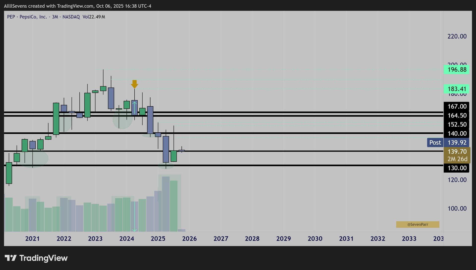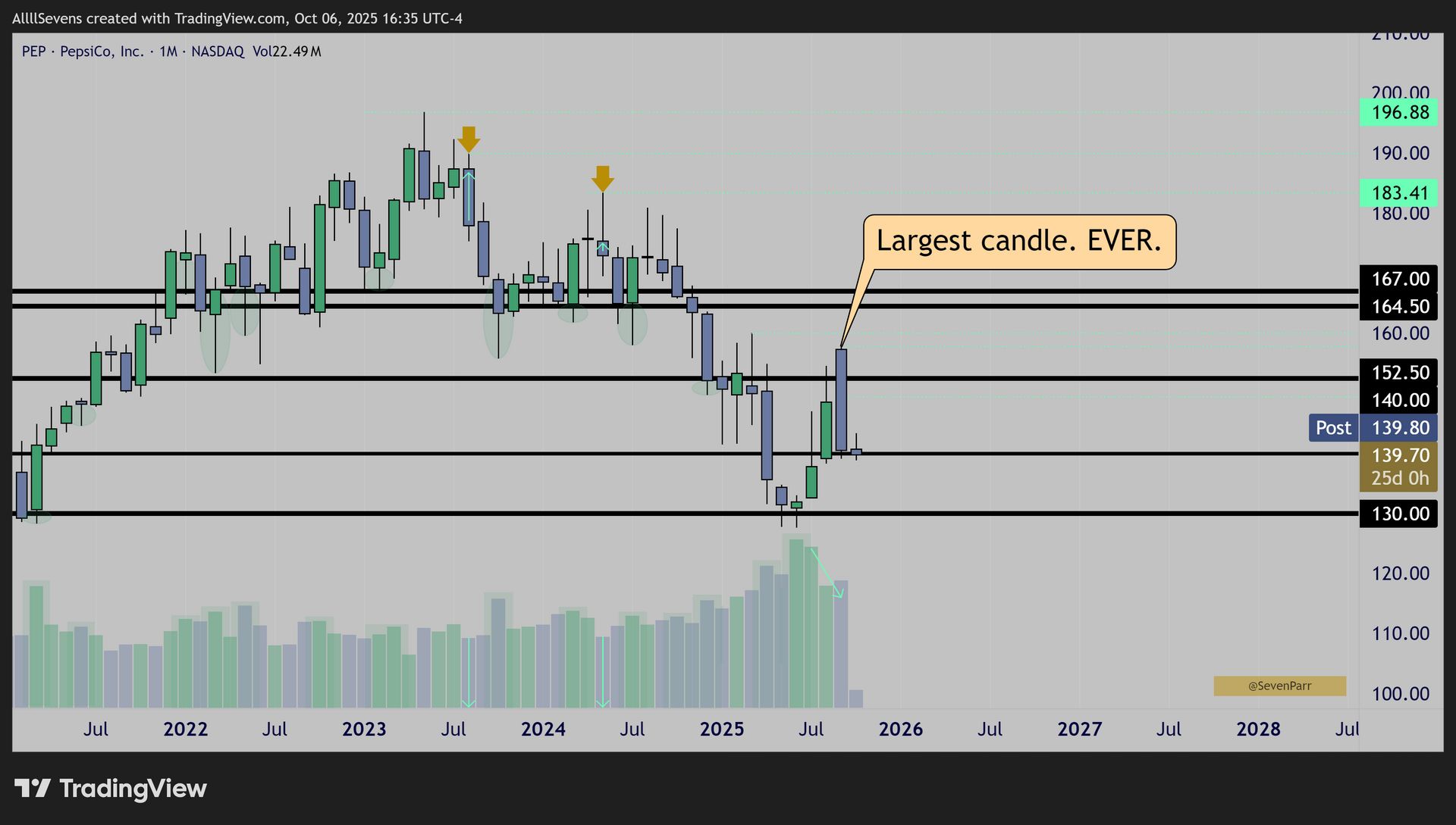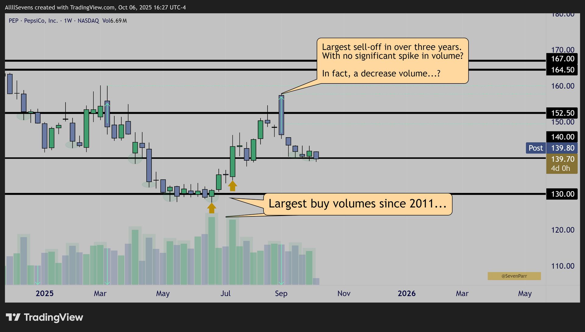 From June-July, $PEP quietly traded its largest buy volumes in over a decade at the $130 and $140 levels suggesting extreme institutional investment occured.